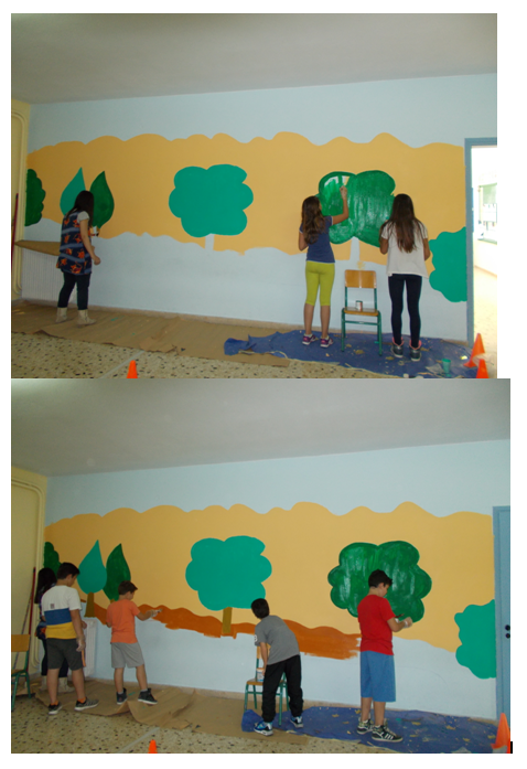 Και να που λίγο πριν αφήσουμε το δημοτικό, εμείς οι μαθητές της Έκτης, σκεφτήκαμε να αφήσουμε πίσω μας κάτι, έτσι για να μας θυμούνται. Κάτι απλό μα και συνάμα δημιουργικό. Στο μάθημα λοιπόν των εικαστικών το σκεφτήκαμε, το οργανώσαμε, σηκώσαμε μανίκια, πινέλα στο χέρι και με καλλιτεχνική διάθεση ξεκινήσαμε..